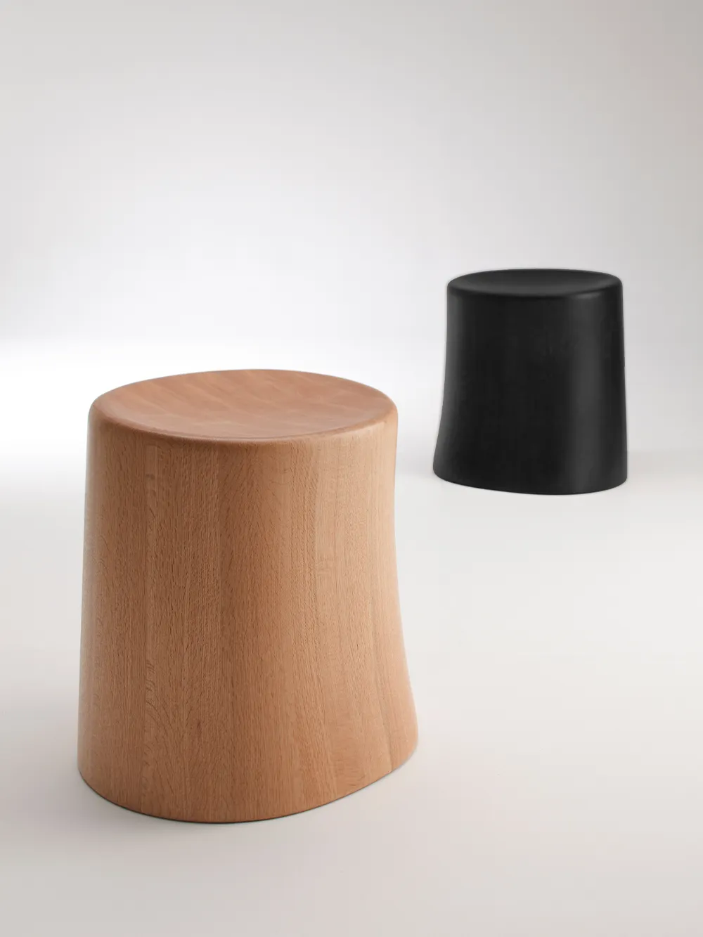 Crafted from unique oak staves, the ELFIN stool’s rhythmic vertical lines rise like timbered echoes of ancient groves, each stave telling its own quiet story of growth.